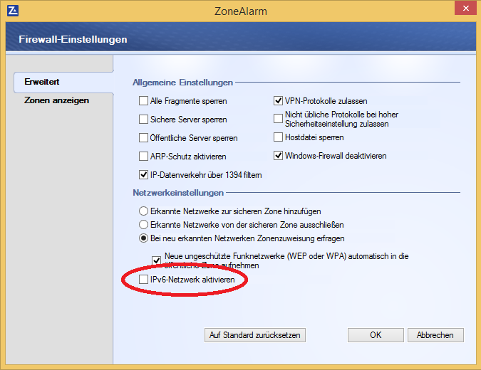 Die bisherige Lösung sah vor, Zonealarm komplett zu deinstallieren. Das sollte aber in der heutigen Zeit nicht mehr Stand der Dinge sein.
